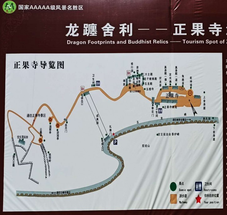 正果寺,原为五龙母子所有,志超莱山后,龙母将绵山以下棋的方式让给志超,五龙皈依佛法,常在说法台上听空王佛说法。后来,五龙功力大增,飞升跃过对山,在山壁上留下了五道沟壑,故名五龙躔。本区主庙叫“正果寺”。这里地势险峻,松柏参天,成为绵山极具特色的游览胜地。