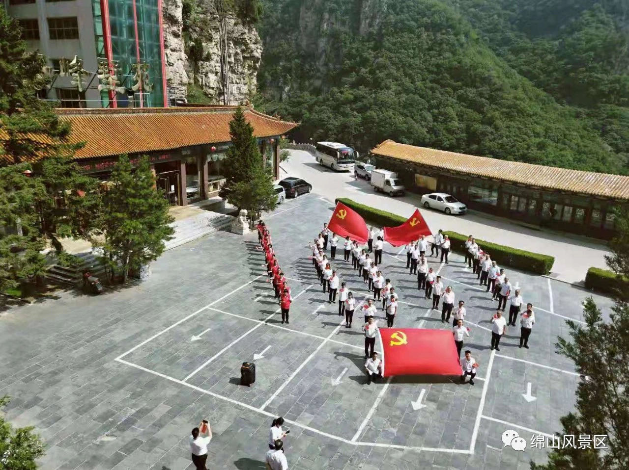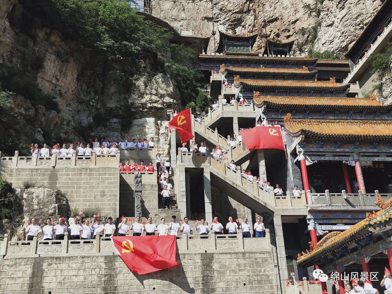 今天是我们伟大的祖国建党一百周年纪念日,绵山风景区全体职干向伟大的党致敬!